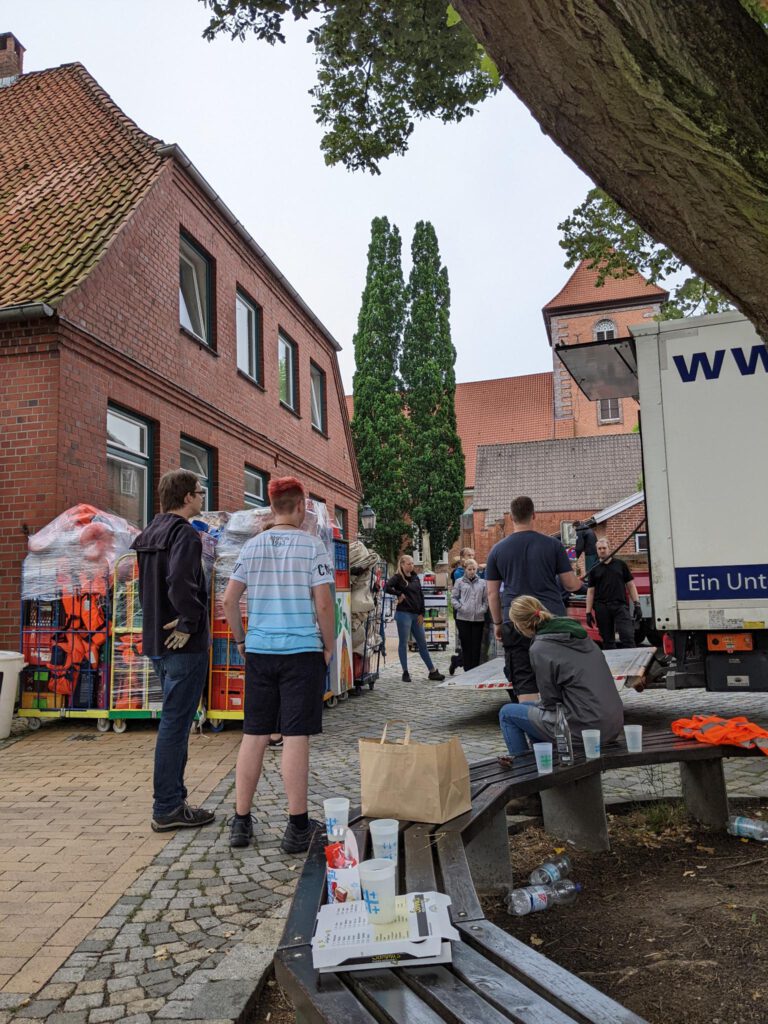 Seit dem 01.07. bereitet sich das kleine Dorf am Sheerwood forest auf die Ankunft der angekündigten Besucher*innen aus der groß Region Preetz vor. Am vergangenen Freitag und Samstag wurde mit einem riesigem Plan Waagen und mehreren kleinen Planen Waagen alle nötigen Materialien ins Dorf gebracht. Bei erstaunlich warmen Wetter fuhren die Bewohner*innen mit ihren Planwagen alle Materialien in ihre Heimat. Kaum auf dem Platz angekommen wurde nach einer kurzen Stärkung sich gleich ans Werk gemacht. Denn die Besucher*innen werden schon bald da sein. In windes Eile wurden kleine und große Zelte aufgestellt und die berühmte Feldküche errichtet. Über den Tag kamen auch die angeheuerten Sterneköche an, die die Gäste während ihres Besuches versorgen.